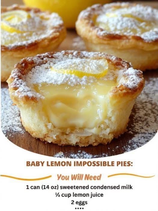 These Baby Lemon Impossible Pies are a refreshing, tangy twist on the vintage classic. Made with just a few simple ingredients, these crustless mini pies magically separate into a soft base and creamy custard-like top as they bake. No crust rolling needed — just mix, pour, and bake!